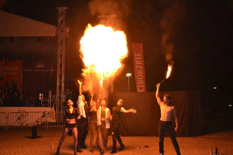 Całodzienne wydarzenia zakończyło przedstawienie teatralne „Dzieje historyczne Browaru Zamkowego”, w wykonaniu Teatru Wodzisławskiej Ulicy oraz przepiękny pokaz ogniowy, który zaprezentowała Manufaktura Artystyczna PI-ART.